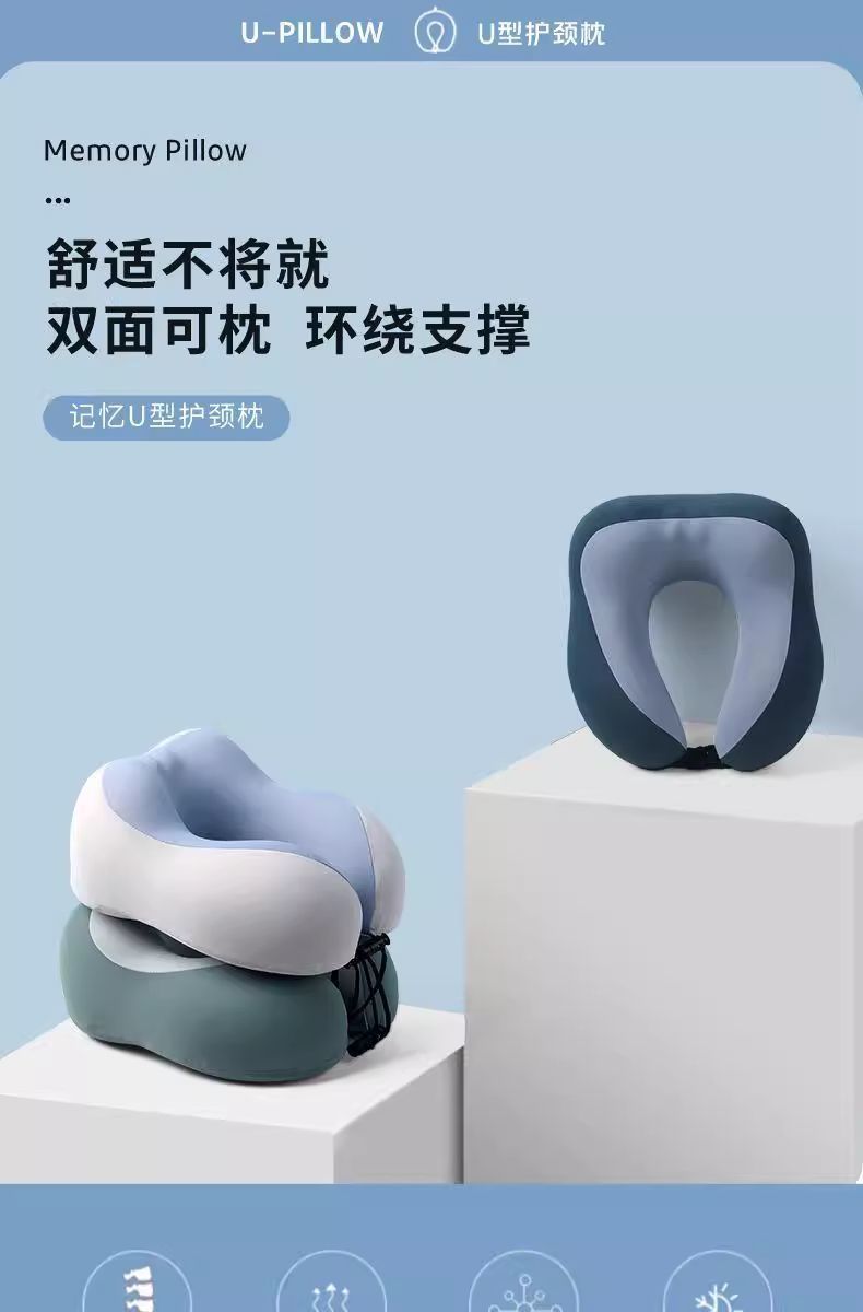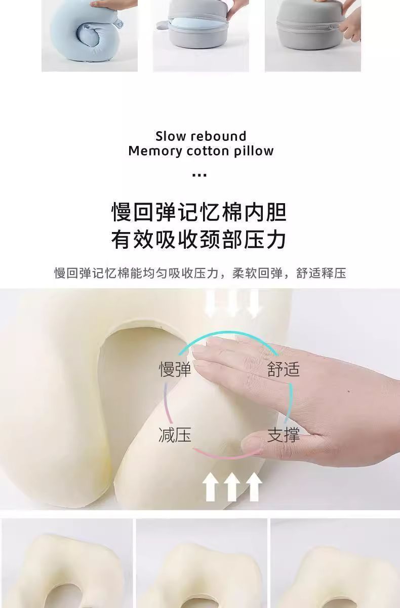 Portable Memory Foam U-Shaped Pillow, Travel Neck Pillow, Airplane Sleeping Pillow, Neck Pillow, Cervical Neck Rest, U-Shaped Pillow